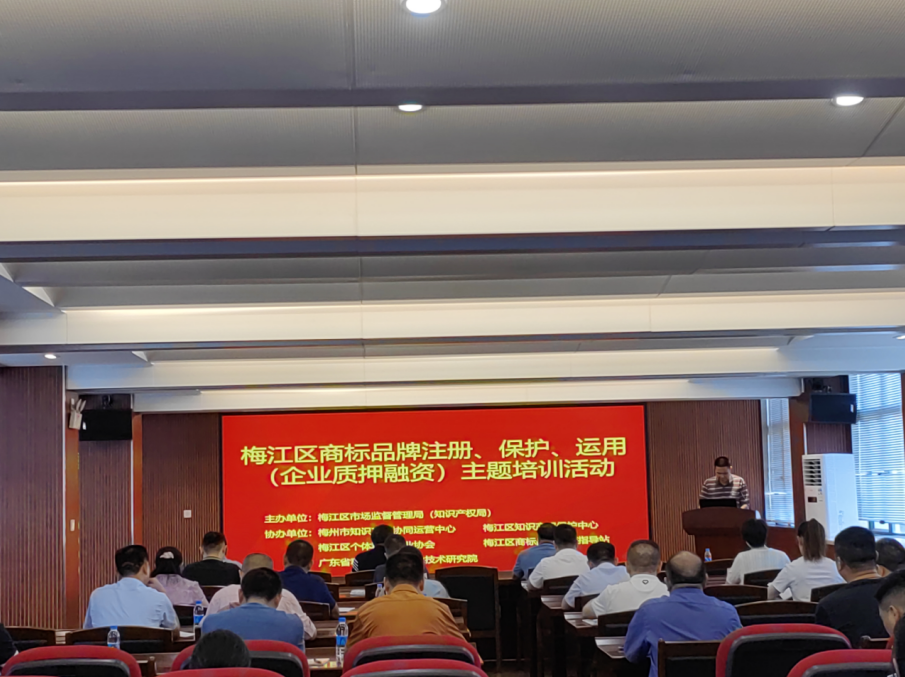 为了深入贯彻落实党中央、国务院以及省、市、区对知识产权工作的决策部署,梅州市知识产权协同运营中心和梅江区知识产权保护中心充分发挥服务效能,为企业提供有关商标、质押融资等领域的实务指导。在梅江区商标品牌培育指导站的纽带作用下,2023年5月26日下午,梅江区商标品牌注册、保护、运用以及企业质押融资主题培训活动在广东省科学院梅州产业技术研究院成功举行。