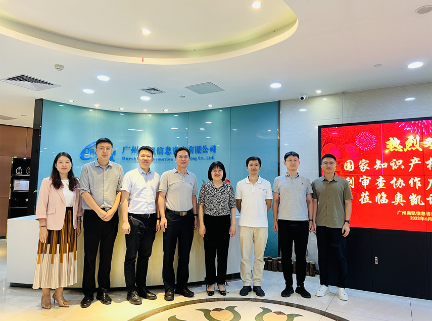6月16日下午,国家知识产权局专利局专利审查协作广东中心副主任杜玉带队赴广州奥凯调研,机械部副主任、广州中新知识产权服务有限公司总经理杨隆鑫陪同。奥凯董事长王峻岭、副总经理叶广海等公司骨干热情接待了杜玉一行,并召开交流会。